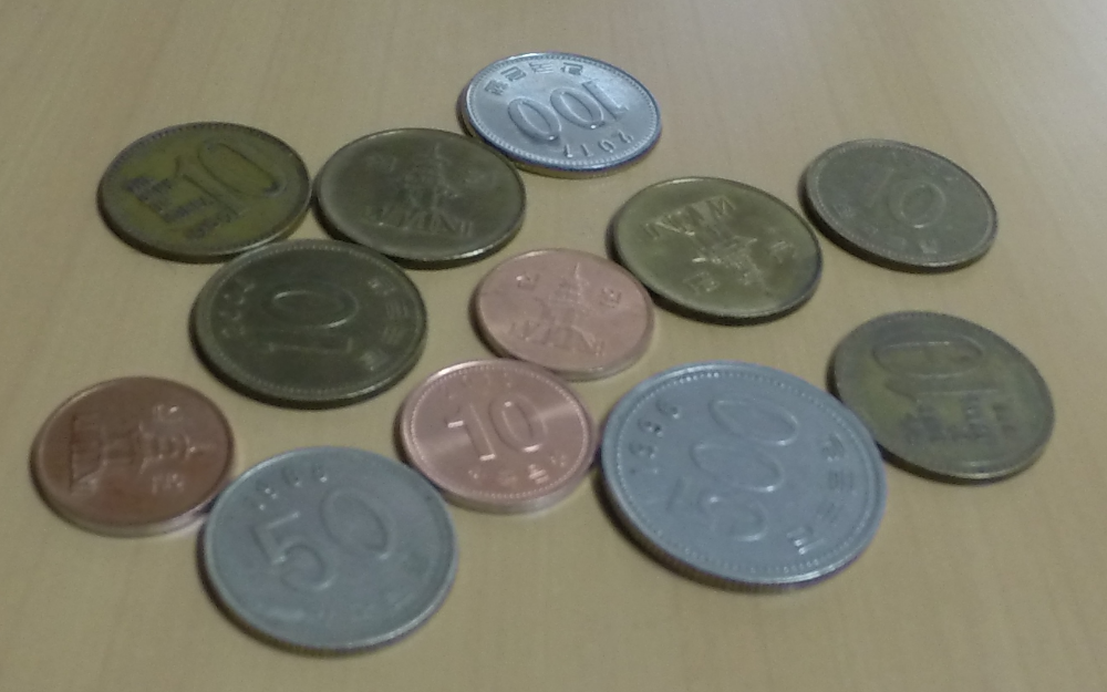 Here’s the coins Koreans have (missing the 5 won and 1 won coins)