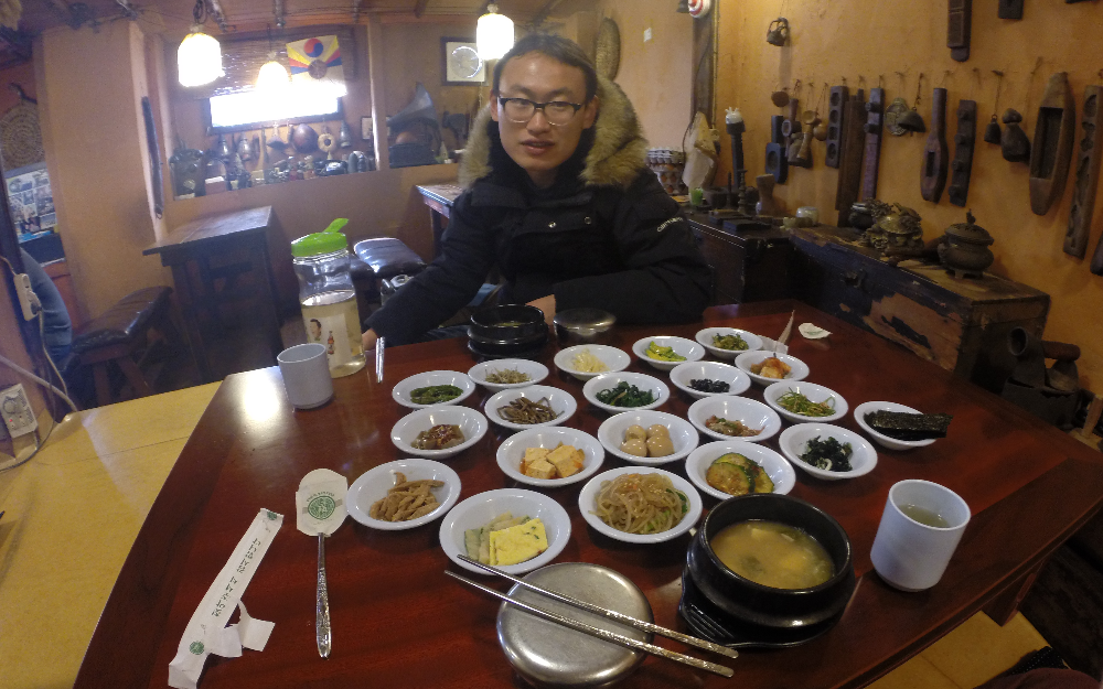 A little late waking up at 11.30 am, dressing up and heading for a brunch with the Korean guy Kim living in our hostel room. He knew this one sweet traditional Korean food restaurant along the Itaewon-ro and there we were heading to. The main course cost 8000 Won (about 5,7 €). We were sitting on a floor eating with the chopsticks and Kim was laughing at me almost all the time. I must have been a terrible sight.