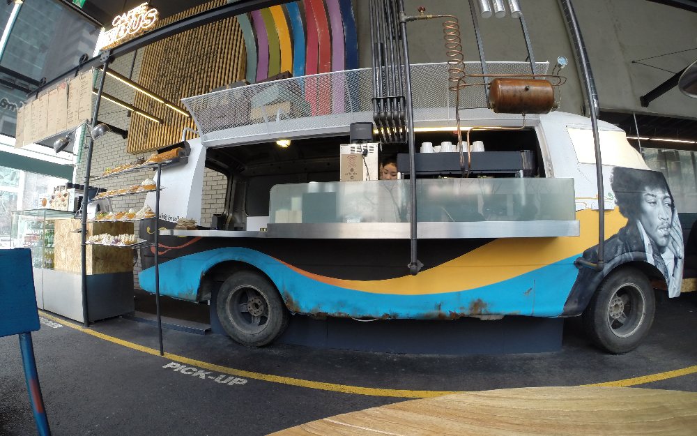 I survived, and I must say the Korean food is very tasty with its many dishes! Mmm-mm-mmm! Kim was going home to Hoegi, so after the brunch I walked him to the metro station and decided then to visit the legendary Gangnam. First metro-ride went very smoothly, as Kim was instructing me how to. Got myself to the Gangnam-station, and had a little mandatory OPPAA on a Gangnam district! A little wondering around, and I found this very comfy cafeteria Inbus, in which you received your coffee from inside a Kleinbus.