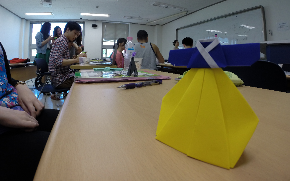 The long holidays were coming this weekend, school was back again on the next Wednesday cos’ of the Children’s day on Monday and the Buddha’s birthday on Tuesday. Both national holidays. Our Korean language teacher had prepared for them, and she arranged some traditional Korean activity for the class on Friday. We got to do the paper Bok Jumoni’s under her supervision. Those were like origami’s, they were constructed to a shape of Bok Jumoni, a traditional Korean money bag.